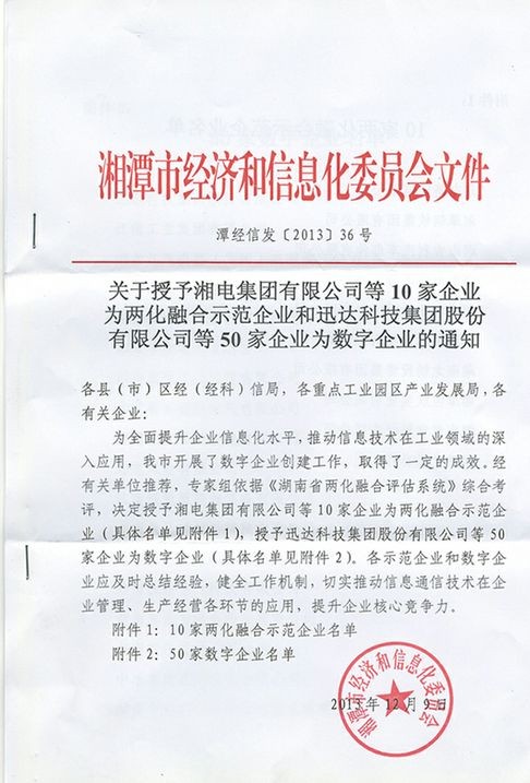 The company was awarded the title of 50 digital enterprises in the evaluation of digital enterprise creation by the Xiangtan Economic and Information Commission.
